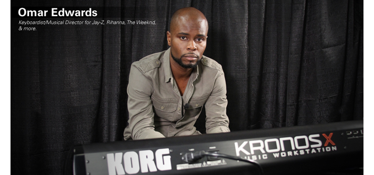 Omar Edwards é tecladista e diretor musical de Jay-Z, Rihanna, The Weeknd e outros artistas de alto nível. Omar cresceu em Wilmington, Delaware, onde ele teve aulas de piano ainda muito novo, e onde depois passou a tocar e fazer turnês com um grupo gospel. Omar agora está trabalhando com alguns dos nomes mais influentes da indústria da música. Nós nos encontramos com Omar durante os shows esgotados de Jay-Z no Barclays Center no Brooklyn para discutir música, suas experiências e Korg KronosX.