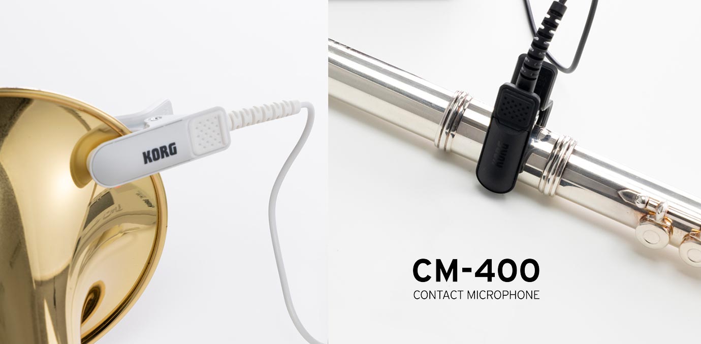 O CM-400 é um microfone de contato tipo clipe que utiliza elementos piezoelétricos que transmitem vibrações diretamente ao afinador, fixando-se o microfone ao seu instrumento. O CM-400 permite uma afinação ainda mais precisa do que o microfone do próprio afinador e permite que o instrumento detecte o seu próprio som de forma mais confiável, especialmente ao praticar com um grupo grande de músicos ou em outros ambientes onde o som é facilmente afetado pelos sons ao redor.